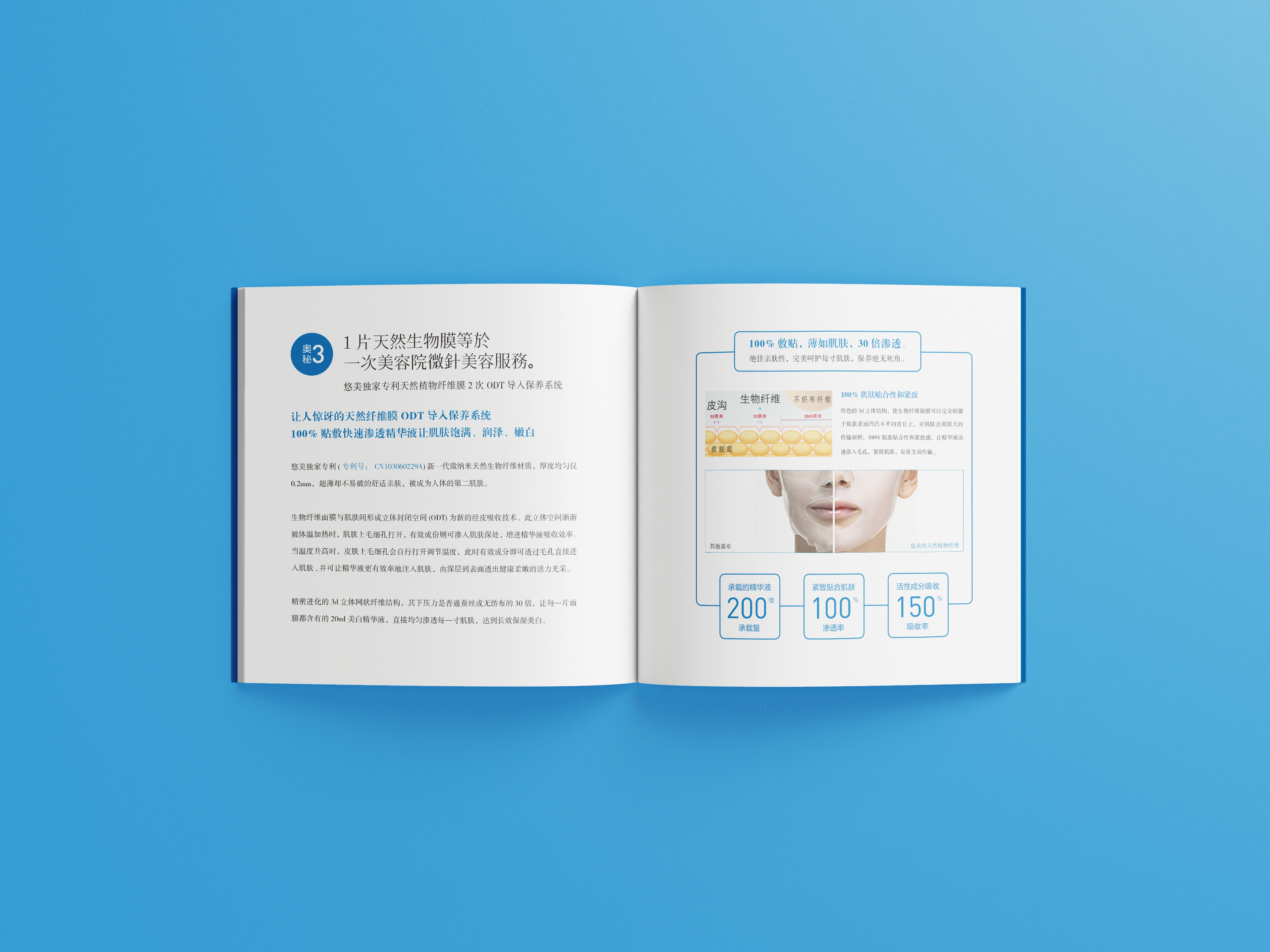悠美要传递的是一种“悠然自信、静享其美”的生活美学,我们把杂志美学引入包装装设计,把面膜的使用场景转换成了阅读杂志,带来知性美的感官体验。